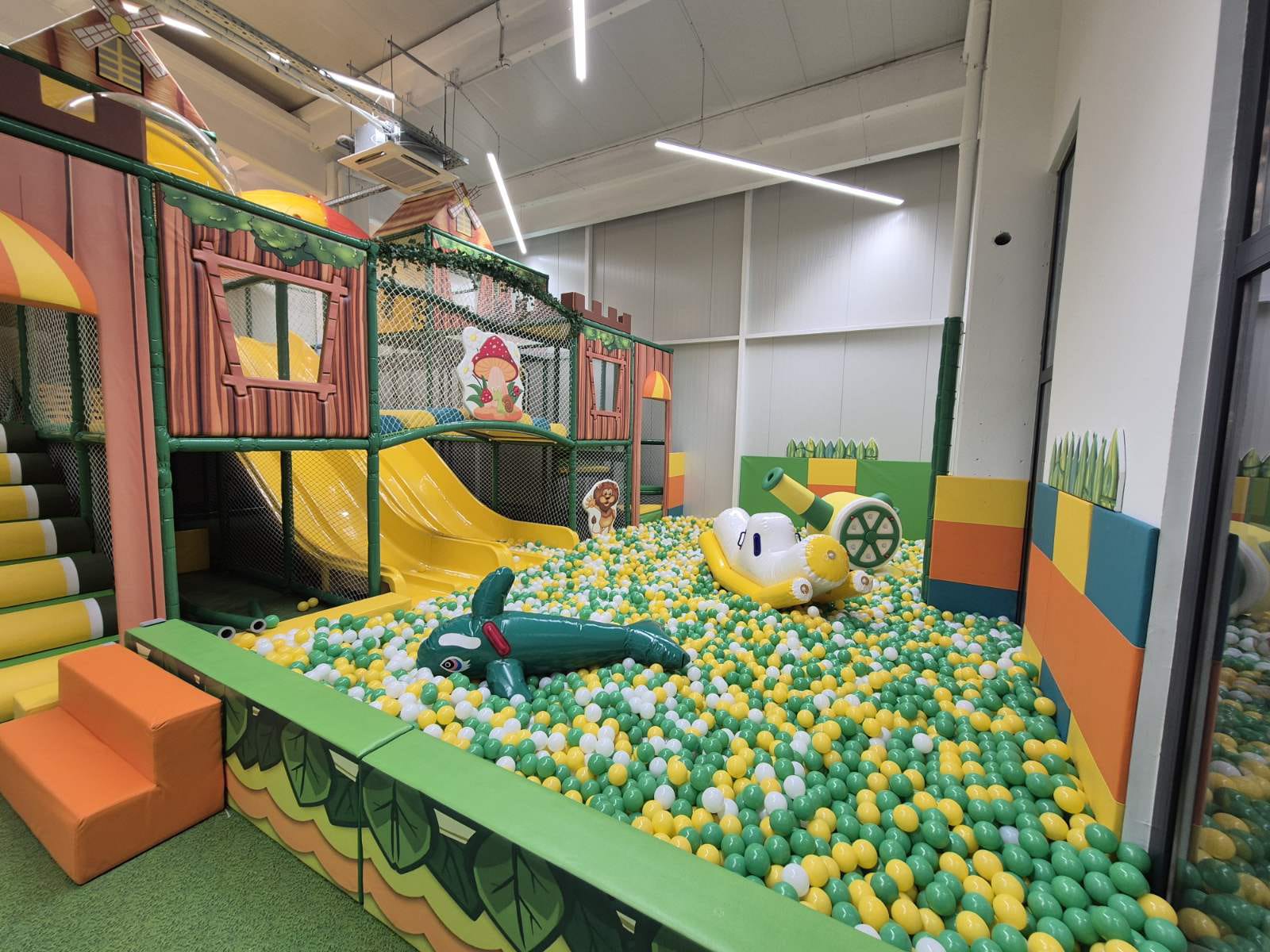 A large ball pit combined with multiple slides creates a high-energy play zone. This area naturally attracts children and increases overall engagement time.