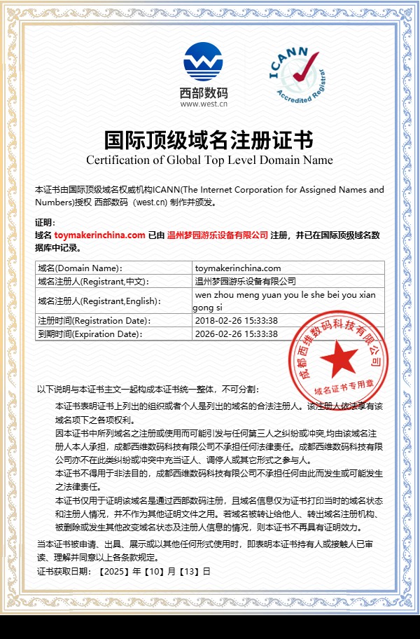 ✅ Registered Company: Wenzhou Dream Garden Amusement Equipment Co., Ltd.